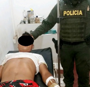 Al llegar el personal de la Policía Nacional, encontró a uno de los sospechosos herido en sus piernas, la motocicleta y un arma de fuego tirada al lado del sujeto, por lo que procedieron a leerle los derechos del capturado y solicitar apoyo a la ambulancia del hospital local, quien traslado al detenido al municipio de Mompox para recibir atención médica.