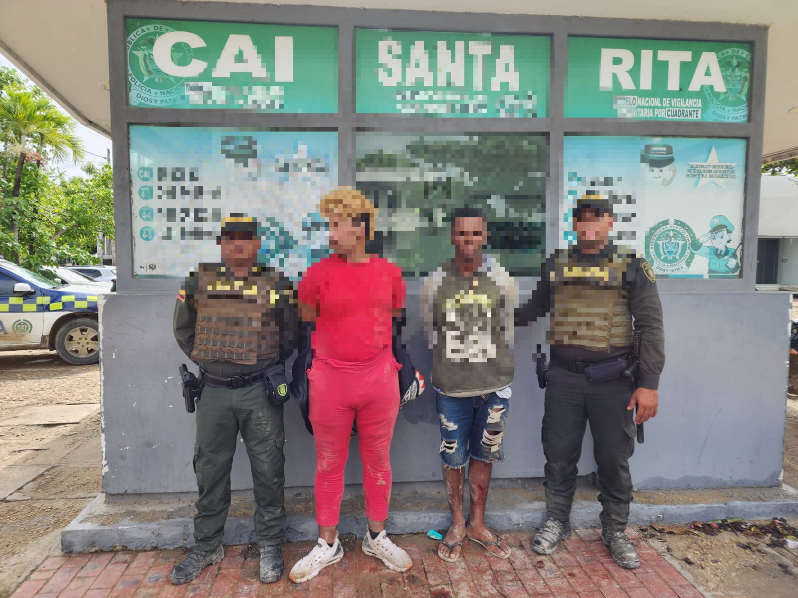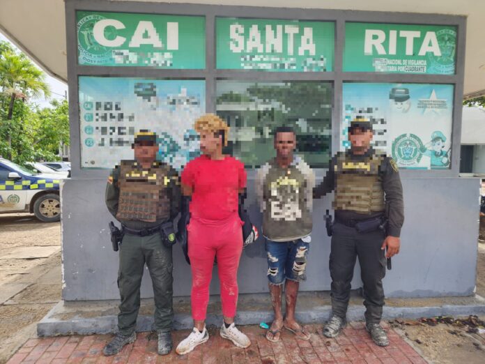 En las últimas horas, dentro de la Ofensiva Contra el Hurto, dos presuntos delincuentes, son capturados en flagrancia por unidades del Modelo Nacional de Vigilancia Comunitaria por Cuadrantes adscritas al CAI Santa Rita, en inmediaciones de la Iglesia del barrio Torices, en poder de un arma blanca y elementos hurtados.