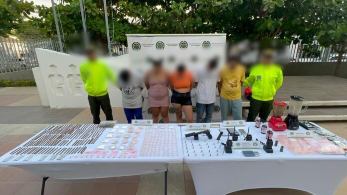“En el operativo fueron incautados 750 dosis de cocaína, distribuidas en sofisticados micro tubos de ensayo y pequeñas bolsas plásticas tipo ziploc, 350 dosis de marihuana, 13 dosis de éxtasis, seis dosis de 2C-B, tres grameras, dos licuadoras, 50 envolturas de papel, 500 micro tubos de ensayos vacíos, 1.000 empaques de bolsas plásticas para dosificar y otros elementos para su elaboración”, señaló el señor coronel Wilson Javier Parada González, comandante de la Policía Metropolitana de Cartagena.