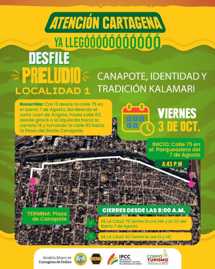 Este viernes, 3 de octubre, se realizará el preludio de la localidad Histórica y del Caribe Norte, que arrancará a las 4:00 p.m. en la Calle 75 con Cra 13 del barrio 7 de Agosto y finalizará en la plaza del barrio Canapote.