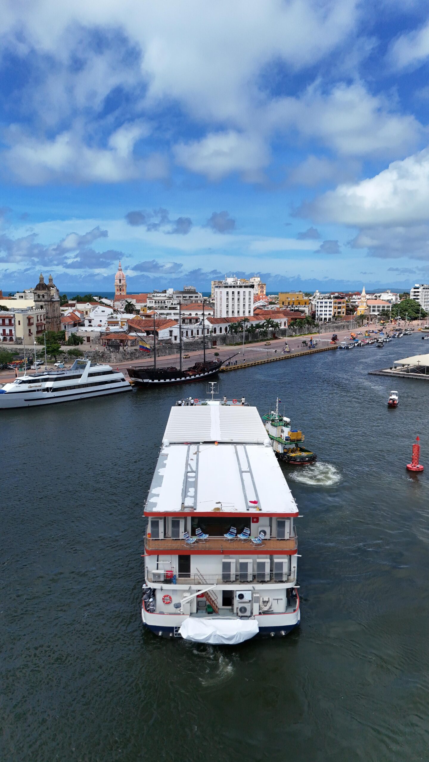 Cartagena de Indias sigue creciendo como punto de zarpe de cruceros. El Muelle de La Bodeguita ha desplegado toda su capacidad logística para recibir la operación de embarque y zarpe del crucero fluvial AmaMelodia, segunda embarcación de lujo de la naviera AmaWaterways que ofrece una experiencia de navegación por el río Magdalena, hasta Barranquilla. El barco ha atracado en el muelle y durante la tarde de hoy estarán embarcando los primeros cruceristas; a las 6 de la tarde zarpará.