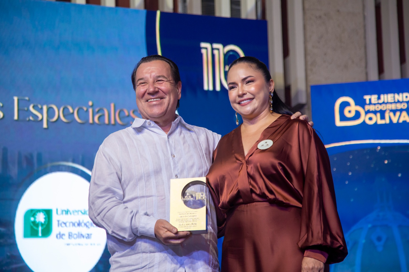 La placa de reconocimiento expresa: “A Aguas de Cartagena S.A. E.S.P., en agradecimiento por su trabajo conjunto y constante apoyo al progreso, la competitividad y el liderazgo empresarial que fortalecen el desarrollo de Cartagena y Bolívar.”