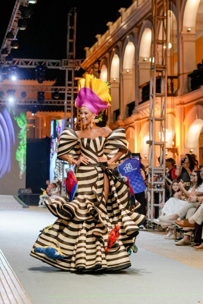 La señorita Bolívar, María José Ayazo, quien lució la creación durante la gala, cautivó al jurado y al público por el simbolismo del traje, que narra la conexión entre el río, la tierra y el espíritu resiliente de los bolivarenses.